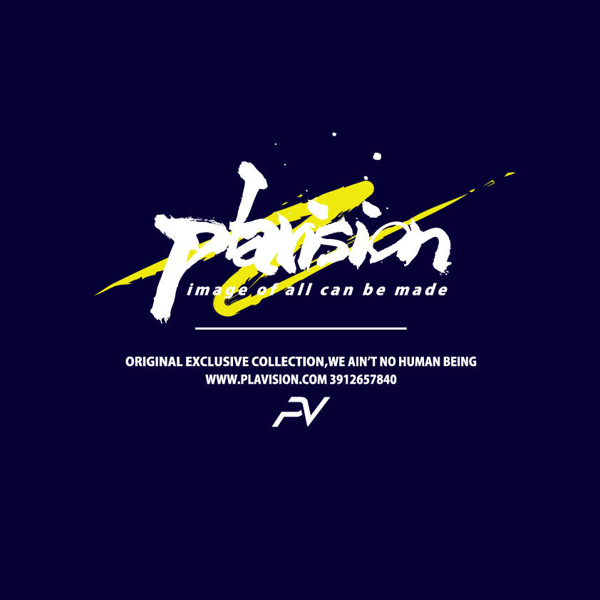 筆文字で力強く描かれた「plavision」のロゴに、蛍光ピンクのスラッシュが鋭く疾走するインパクト抜群のデザイン。