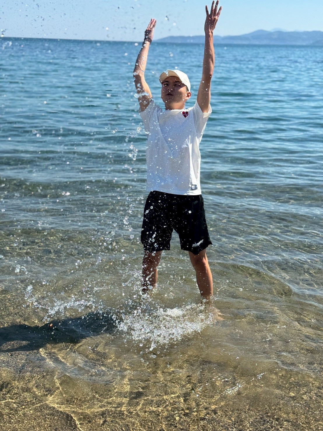 移動着やオフの日のリラックスシーンでナイロンショーツとセットアップで着用してほしいドライコットンライクTシャツ。左胸に刺繍ロゴと裾のピスネームのみのミニマルでシンプルでありながらバランスが取れたプラビジョンの