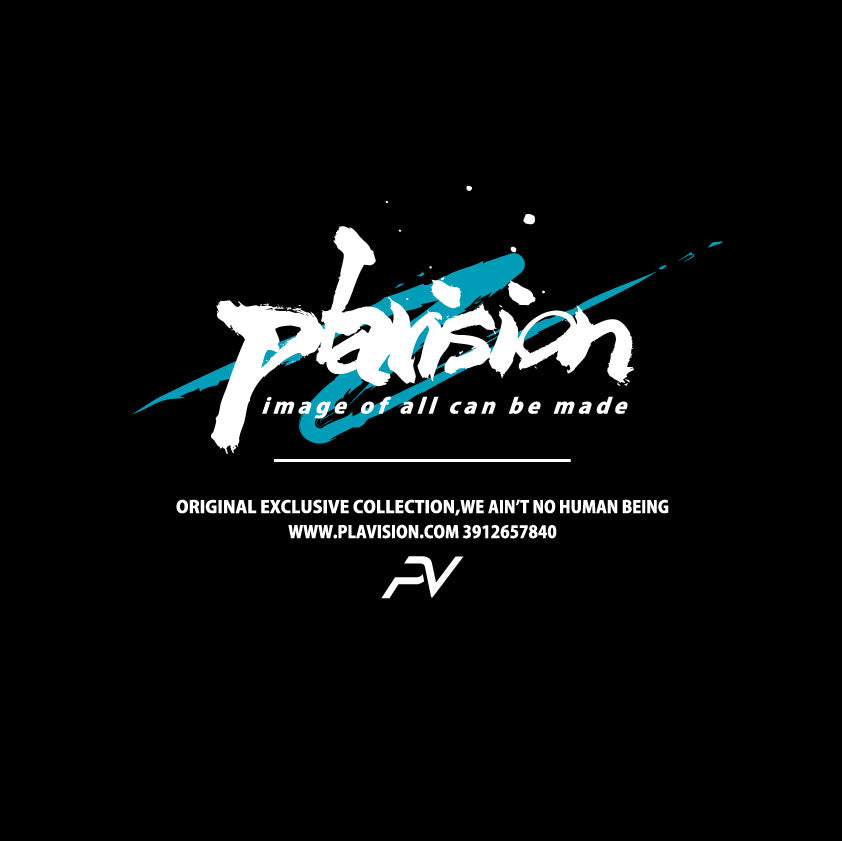 筆文字で力強く描かれた「plavision」のロゴに、蛍光ピンクのスラッシュが鋭く疾走するインパクト抜群のデザイン。